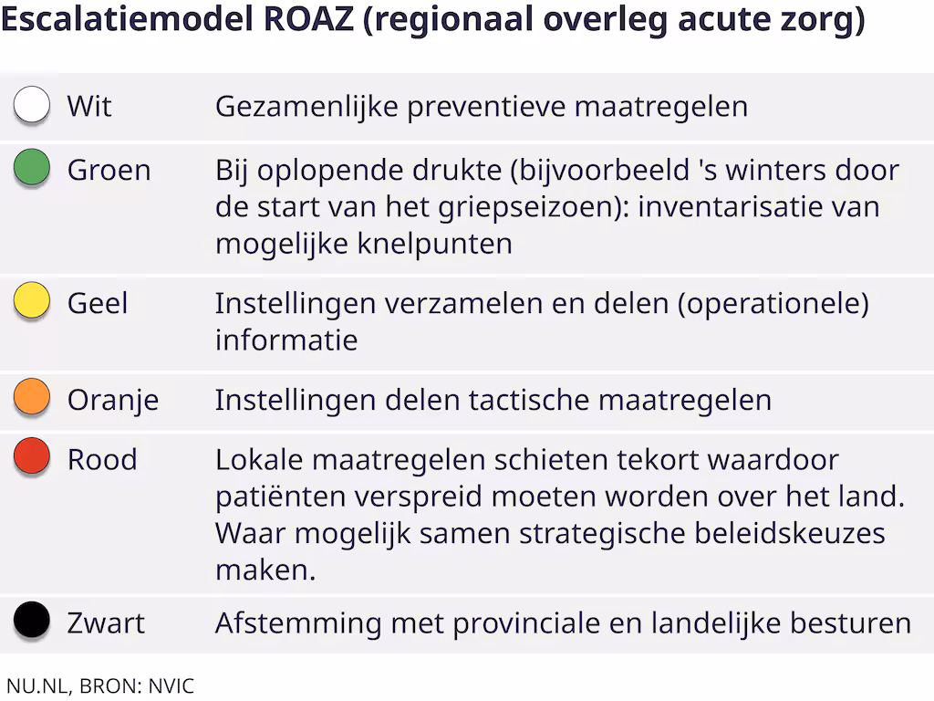 “Het plan dat we tijdens corona gebruikten, gaan we omschrijven naar een algemener plan dat inzetbaar is in situaties waarbij de druk op de zorg te hoog wordt”, legt een woordvoerder uit. Dat is nog niet af, maar het heeft “hoge urgentie”.